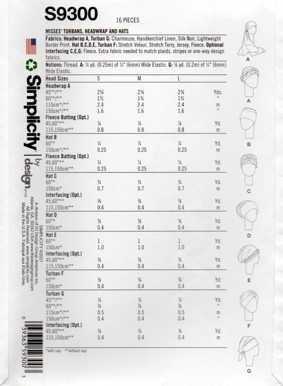 Eight Styles Turbans Headwrap And Hats Pattern Simplicity Etsy Belgie