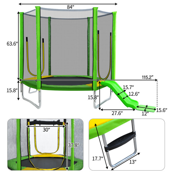 Balight 7ft Trampoline For Kids With Safety Enclosure Net Slide And Ladder Easy Assembly Round Outdoor Recreational Trampoline Wayfair